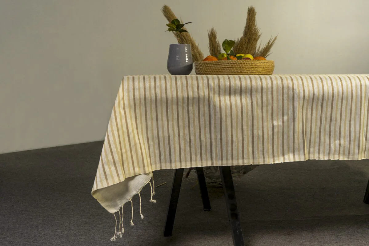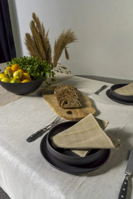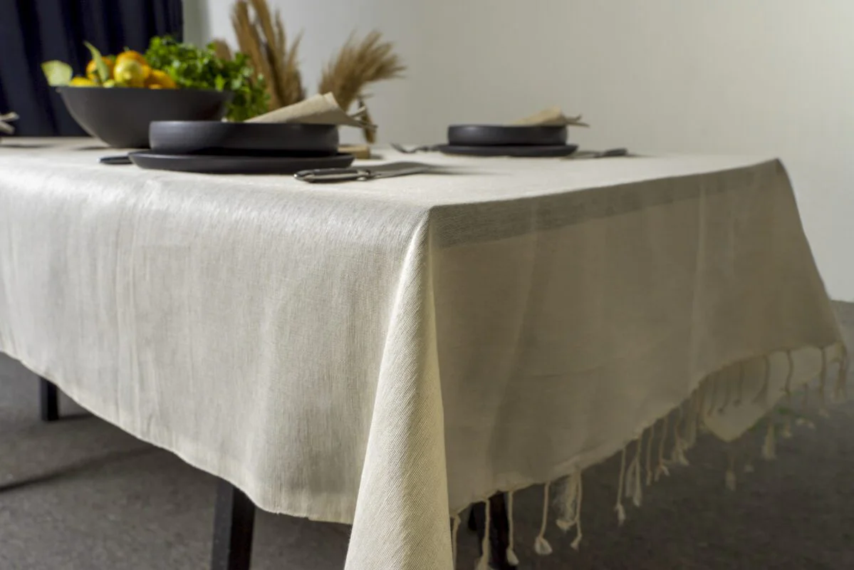 NSIJA tablecloths are developed with attention to structure and proportion. Woven to accompany daily rituals as well as shared moments, they combine practicality with refined craftsmanship. The weaving density, edge finishing, and surface regularity are carefully controlled to ensure durability while preserving the handmade character of each piece. Subtle details — including restrained patterns or minimal accents — allow the textile to complement a wide range of table settings without dominating the space. These tablecloths are designed to integrate naturally into homes, guesthouses, and curated dining environments.